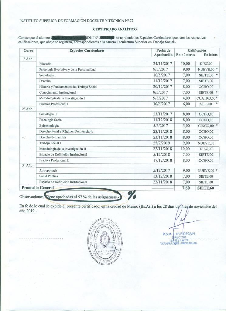 Podrán solicitar Analíticos incompletos con su porcentaje de materias aprobadas, como comprobante oficial de acreditación de finales o para presentar en otros organismos. El trámite durará 48 hs y tiene un costo de $ 10.- Se solicita y se retira en la administración.