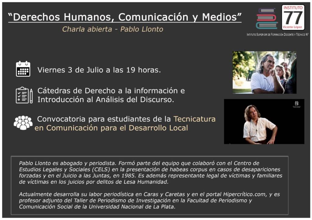Charla Abierta: Derechos Humanos, Comunicación y Medios con Pablo Llonto 30 junio, 2020 Luis Bidegain Sin categoría Deja un comentario Transmisión en vivo por YOUTUBE: ENTRAR Comparte esto: Haz clic para compartir en X (Se abre en una ventana nueva) X Haz clic para compartir en Facebook (Se abre en una ventana nueva) Facebook
