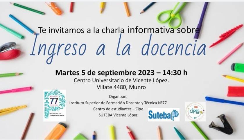 El martes 5 de septiembre a las 14: 30 h se realizará una charla sobre Ingreso a la Docencia en el Centro Universitario de Munro.