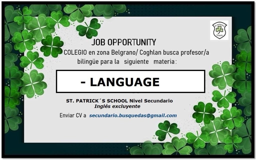 Nos encontramos en la búsqueda de docente bilingüe en inglés para dictar la materia LANGUAGE en nuestro colegio.