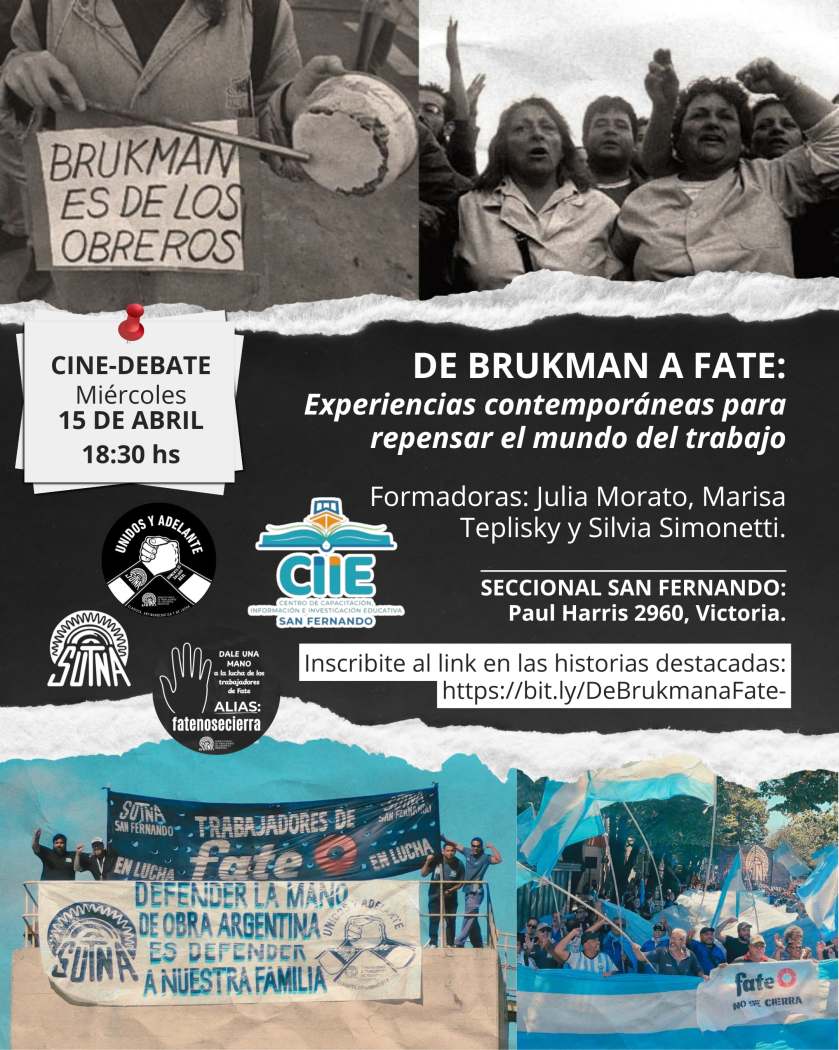 Se invita a participar de la actividad de extensión que se realizará el miércoles 15 de abril a las 18:30 hs, en el predio de FATE, ubicado en Oayl Harris 2960, Victoria (San Fernando).